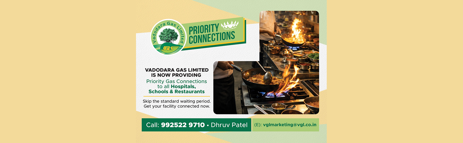 Vadodara Gas Limited (VGL) is a Joint Venture Company (JVC) formed between GAIL Gas Limited (a wholly owned subsidiary of GAIL (India) Limited) and Vadodara Municipal Corporation (VMC). Incorporated on September 13, 2013, VGL commenced operations on October 1, 2014, with the objective of developing and expanding City Gas Distribution (CGD) infrastructure in Vadodara and its adjoining areas.